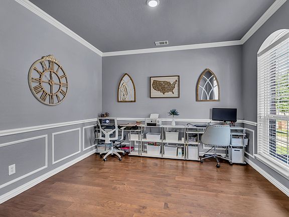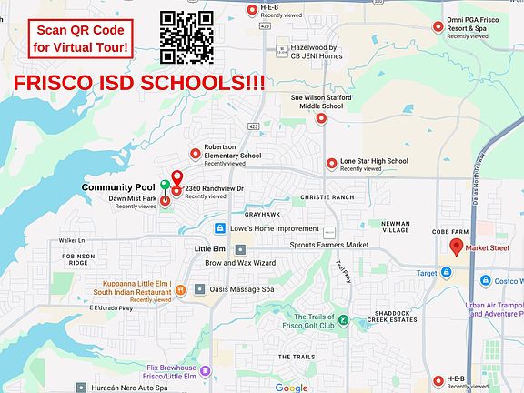 PRICE REDUCTION IN FRISCO ISD!!! Spacious 5 Bedroom 3 Full Bath Home with Heated Pool & Spa! Terrific Landon Home features stone encased landscaping, Dramatic 2 Story Brick & Stone Exterior with Glass Front Door. Insurance replaced Roof & Gutters in July, 2025 plus 15 new custom vinyl windows! Inside you’ll find Modern Colors of Gray & White combined with Wood flooring downstairs. At the Front Entry, Pocket Doors enclose the Large Study, easily accommodating large office furniture! Notice the Wood look LVP Flooring & Wrought Iron Stairway. The Kitchen is Wonderful with Abundant Cabinets, Stainless Steel Appliances, Granite Counters, Walk in Pantry and an Open View of the Living Area and Pool! The Dining Area features upgraded Light Fixture & provides ample space for large gatherings. The Living Area has a Delightful Gas Fireplace & an Amazing View to the Backyard Oasis. The 1st level Guest Bedroom & Full Bath perfect for family visits. Upstairs there is a Huge Game Room plus 4 more Bedrooms & NO CARPET to keep clean. The Primary Suite is a Massive Bedroom with space for a sitting area or exercise space. The Primary Closet is Unbelievably Oversized & the Bath has an Extended Vanity with seated bench area. Bedrooms 3, 4 & 5 are nice size for Queen Beds + Nightstands and share a Jack & Jill Bath. Venture to the outdoor oasis with Covered Patio provides for Countless Events Entertaining or Grilling while overlooking the backyard. Enjoy Relaxing in your Enclosed Heated Pool & spa year round! There’s also a swing set which stays, and a significant Storage Shed. Enjoy the community pool, Basketball, Pickleball courts, playground just 2 blocks away!! Tankless water heater, New Garage Door and Updated lighting too! Just minutes from the PGA Headquarters, Toyota Stadium, Universal Studios (coming soon), shopping, restaurants, and entertainment. Easy commute via Dallas North Tollway. Ideal for multi-generational living!!