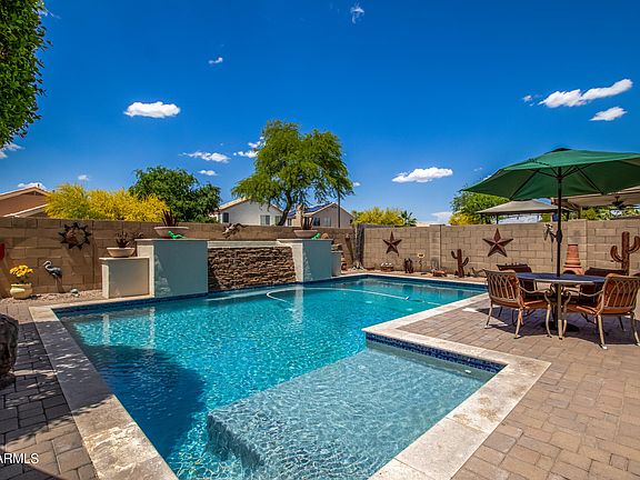 dual sink ensuite, garden tub, upgraded shower, and walk-in closet. The backyard paradise has a covered patio with ceiling fan, stylish pavers, and natural turf. The refreshing pool goes from 4ft to 10 ft in the deep end, with a relaxing waterfall feature and Baja bench. Updates made: Roof underlayment replaced 2017, AC/furnace unit replaced just under 2 years ago, water heater brand new, kitchen has been updated within last 2 years, bathrooms also remodeled, all faucets are new, master bath shower remodeled, new carpet 2024 (premium carpet), wood look tiled installed downstairs, replaced all window sun screens.