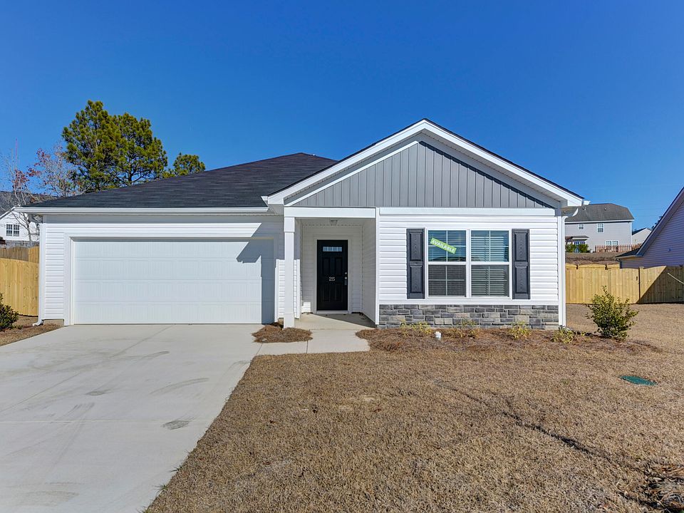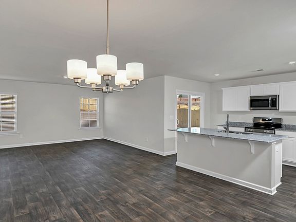 The Magnolia's classic design creates a welcoming first impression, with 1,700 square feet of smartly designed living space. The foyer leads to the expansive great room, offering endless possibilities for arranging your perfect gathering space. The adjoining eat-in kitchen is both stylish and functional, featuring decorator cabinets, a walk-in pantry, and a central island with an undermount sink, dishwasher, extra storage, and a breakfast bar for casual dining. The primary suite is a true retreat, with a spacious bedroom enhanced by a tray ceiling. The en-suite bath includes dual vanities, and a walk-in closet styled like a dressing room. Two additional bedrooms, another full bath, a mudroom entry, and a covered patio add to the Magnolia's charm. Photos are stock.