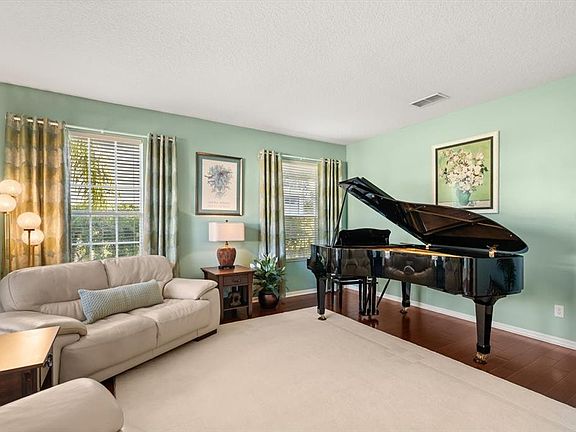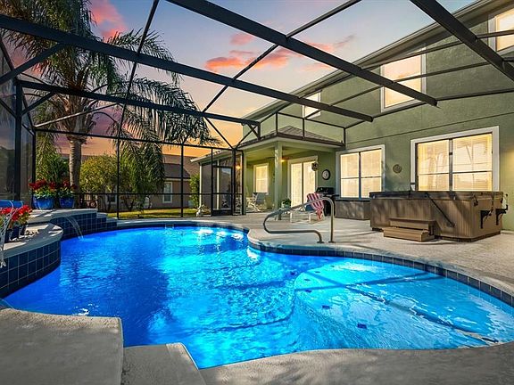 This spectacular home sits on one of the premier lots in the guard-gated community of Sorrento Hills and Sorrento Springs, overlooking the 12th Fairway of the Eagle Dunes Golf Course. The setting is stunning, with breathtaking views from the lanai and pool area and a level of privacy that is rare. Inside, the home has been beautifully updated and offers more than 3,800 square feet of comfortable and well-designed living space. The layout includes formal living and dining areas, a spacious family room, and a bright breakfast nook that captures views of the fairway. The kitchen features custom cabinetry, granite countertops, stainless steel appliances, and generous storage, creating a great space for daily living or entertaining. The primary suite is tucked away for privacy and includes an ensuite bath and walk-in closet. The split-bedroom design provides excellent separation for family and guests. The backyard is open and expansive, offering room for future outdoor enhancements while maintaining sweeping golf course views that enhance the sense of tranquility. Sorrento Springs is known for its resort-style amenities, including an 18-hole golf course, clubhouse with fitness center, community pool, enclosed pavilion, playground, tennis courts, and basketball court. The neighborhood hosts food truck nights, outdoor movie events, and golf cart parades that bring residents together and create a warm, engaging environment. Golf cart access to nearby shops and dining adds everyday convenience. Located minutes from Mount Dora, Eustis, HWY 44, and the 429 Toll Road, the home offers quick access to local conveniences and an easy drive to Daytona Beach. This is a rare opportunity to own a beautifully updated home with exceptional views, outstanding community features, and a lifestyle that feels like a permanent vacation.