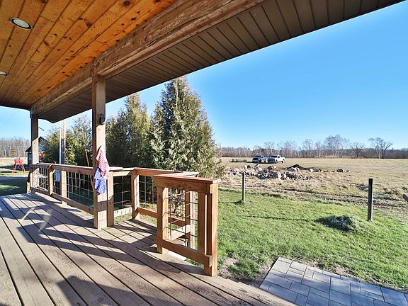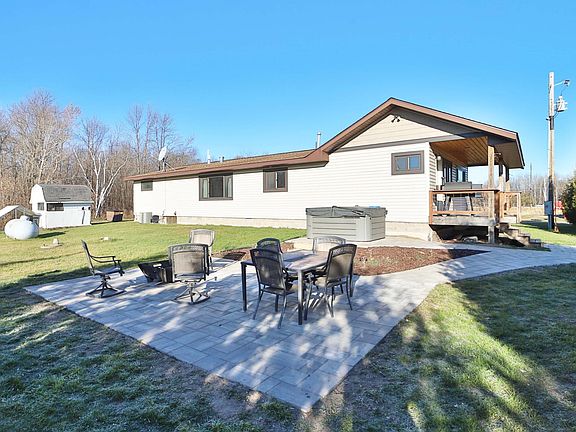 Are you looking for country living at its absolute finest? This thoughtfully maintained and updated 3-bedroom, 2-bathroom home sits on a sprawling 51 acres with frontage on the natural environmental lake, Rice Lake. Whether you need space for horses, livestock, chickens, or expansive gardens, this property offers it all. Enjoy the large kitchen with new appliances (including a gas range), a walk-in pantry, and a dedicated dining room. The home also features a large mudroom/laundry, a spacious en-suite bathroom off the primary bedroom, beautiful tongue-and-groove finishes, warm wood accents throughout, and ample storage. On the new paver patio, enjoy morning coffee or unwind in the evening around the fire pit or in the hot tub. You'll also find a new roof installed just six months ago. Storage abounds! The pole barn was recently enclosed, paved, insulated, and sided, and features wood heat, complete with an additional room perfect for wood storage or an office. The additional barn is ready for livestock, additional workspace, or extra storage. Ample pasture space provides plenty of room for grazing or hay, and the charming chicken coop is fully prepared and ready to welcome your hens. This property truly offers it all: a well-cared-for home, hard to find acreage, functional outbuildings, and a backyard oasis perfect for both relaxation and entertaining.