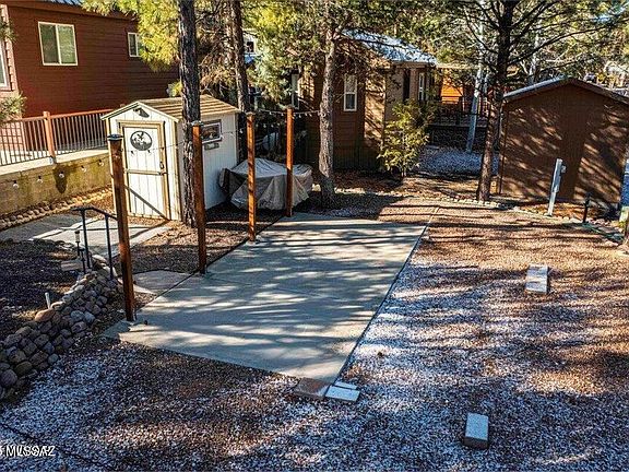 Full-time RV lot WITH 37' RV has full hook-ups and in a perfect location within the beautiful White Mountain Vacation Village (WMVV). This lot has plenty of room for your RV with an additional parking space for a vehicle. The corner lot location allows very easy access for both your RV and vehicle. The lot includes a cement pad on the door side and a nice secure storage shed. With party lights and outdoor furniture included you're ready for fun and relaxation within minutes of pulling in! WMVV is a great destination with towering ponderosa pine trees and forest feel, yet located very near all amenities, medical facilities, and loads of outdoor fun. With the mobility of an RV there's no excuse for enduring another brutal summer in the desert! The 2019 37' Forest River Rockwood RV has self-leveling 4 - 6 volts batteries. 1 AC living room and heat pump unit in the bedroom. 3 Smart remote-control fans.