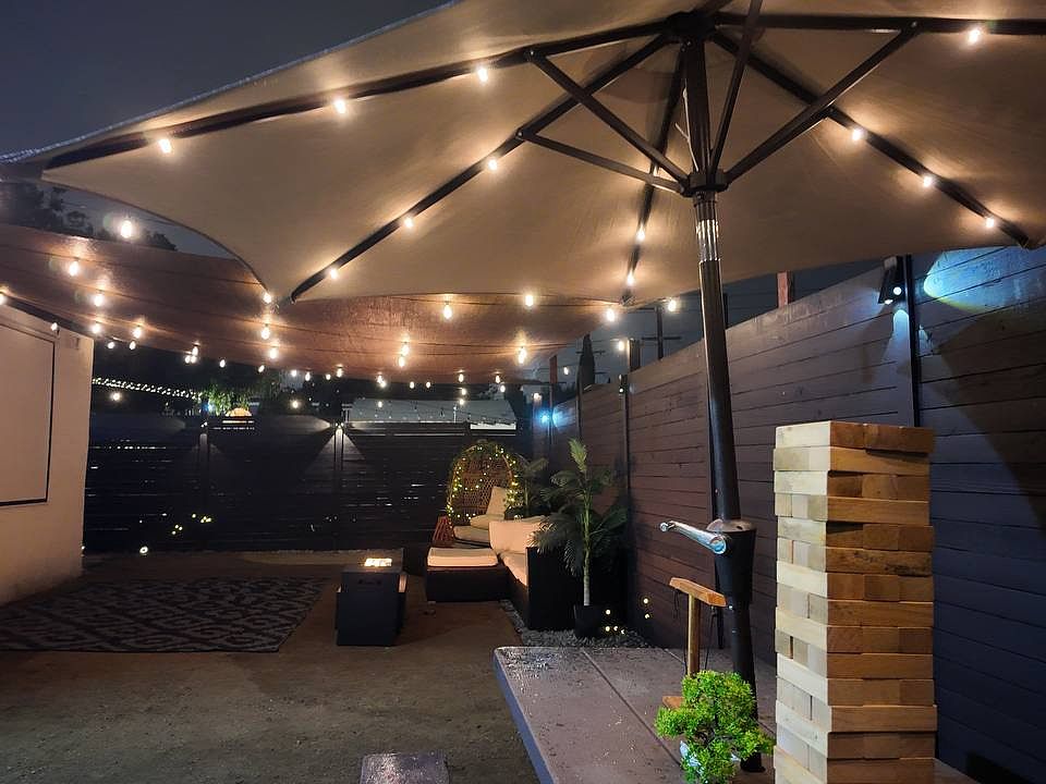 Backyard oasisProjector screenHidden bookshelf doorPull-out couchOutdoor diningPrivate fenced parkingFire pit