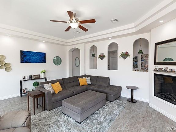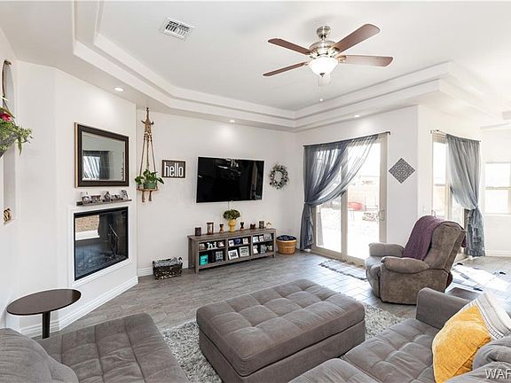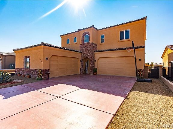 Gorgeous 4 bedroom 3 bathroom, 2555 sf custom built home in Mountain View Estates with 2 attached double car garages(4 car garage in total)* This home is perfectly situated on a 0.1541 acre lot with gorgeous views of the Hualapai Mountains* Beautiful curb appeal with easy care, mature landscaping & decorative crushed rock* deep concrete colored driveway* quality 2'x 6' wood frame and stucco construction* tile roof* gorgeous exterior design with brick trim* covered front patio* Central heat & AC* Upgraded windows and sliders* Natural lighting throughout the home* This is a perfect multi-generational home* Inviting entry* Wood slate tile flooring & carpet throughout* Large living room with 10' coffered ceilings, cool grey colors & a cozy electric fireplace to set the mood* spacious dining area with sliding glass door to covered rear patio*Gourmet kitchen featuring: quality soft close cabinets, quartz countertops w/tiled backsplash, food pantry, upgraded appliances(glass top stove/oven, microwave, dishwasher & refrigerator) & disposal*** King-size owners suite with/a bonus home office area and slider to covered patio; Deep walk in closet w/shelves.. Then retreat to your own little oasis and relax in the soak tub or refresh in the tiled walk-in shower, with dual sinks, upgraded countertops, cabinetry and privacy restroom*Bonus storage area under the stairs* Upstairs features a large great room, perfect for entertaining and family fun** 3 full bedroom size guest bedrooms all with walk-in closets* upstairs guest bathroom has walk-in shower & full length vanity* Main floor guest bathroom too * In-door laundry room has built in shelves and cabinet with washer and dryer included** 4 car garage in total, finished, window for natural lighting with automatic garage door openers and remotes* Rear yard is perfect for entertaining and ready to go! with the large covered patio, decorative rock, pavers and block wall for privacy* Kingman Arizona, a great place to retire* You can be at the Hualapai Mountains enjoying natures wildlife (deer, elk & beautiful birds) at 6000' elevation in 15 minutes** 40 minutes to Colorado River, Lake Mohave & Laughlin Nevada Casinos* NO HOA fees* if you like off roading you will love the location with riding trails very close by* Call listing agent for a tour today*