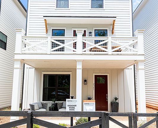 Dual Front Porches. Quartz countertops and light gray cabinets.