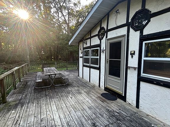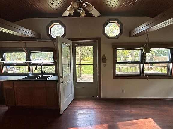 Tucked away in a serene nook of nature, this charming 1-bedroom, 1-bathroom cottage offers the perfect balance of peaceful seclusion and convenient access to town. Just minutes away from local amenities, this approximately 1,000 sq ft home feels like a world apart, surrounded by the beauty of the outdoors and the soothing sounds of nature. Inside, you'll find a warm and inviting space, featuring vaulted wood plank ceilings and a cozy wood-burning stove. While the home could benefit from a few updates, its potential is immediately evident. The outdoor space is a haven for nature enthusiasts. Spend your days on the wraparound deck, where you can immerse yourself in the sights and sounds of wildlife-birds singing, deer wandering through the yard. This property is ideal for those who cherish both solitude and convenience. If you're ready to create your own personal retreat, this cottage is a blank canvas waiting for your vision. With a little TLC, it could become the perfect escape you've been dreaming of. Don't miss out-schedule your showing today!