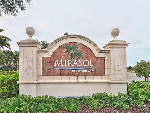 Beautiful 3 bedroom, 2 bath coach home with a 1 car garage located in Mirasol at Coconut Point. Beautiful 42 inch dark wood kitchen cabinets, granite counter tops, stainless steel appliances, walk in pantry. Fans and blinds included throughout. Dual sinks in the master bath. Tiles throughout living area, carpet in the bedrooms. Laundry in residence. Amenities included are: Clubhouse, Community Pool, Jacuzzi, Fitness Room, pool table. Close to everything: Beaches, shopping, restaurants, etc.