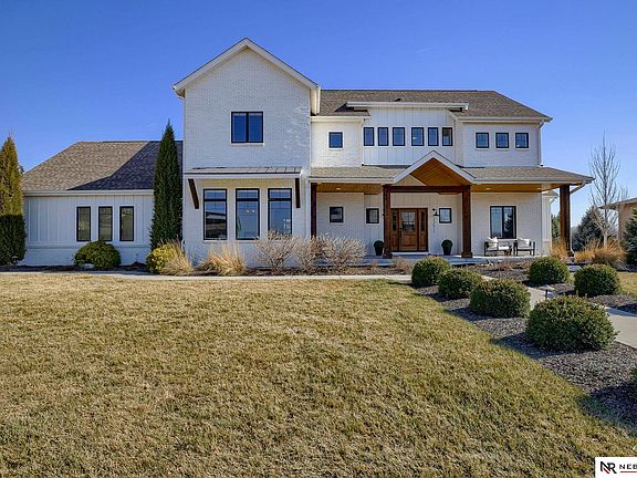 Rest and Relaxation is waiting for you here in this Hamptons neighborhood home. Located on the edge of Omaha with nearly an acre you will find a tranquil residence that has been custom built with touches of design and detail that set it apart. Sunlight pours in through the numerous well-placed windows, illuminating the spacious layout, which includes six generously sized bedrooms, 5 of which have walk-in closets and connected bathrooms. The main floor showcases a spa like primary suite and a dedicated office with built-ins and a cozy fireplace. Entertaining and rec spaces abound with a 2nd floor loft, an open main floor living room, formal dining, and a sprawling basement that offers a huge great room with a sunken bar, an exercise room, and a separate sunken family room area, all perfect to spread out those large gatherings. Outside features a covered composite deck and a rustic firepit retreat. The .88 acre lot offers plenty of space for all kinds of activities and fun!