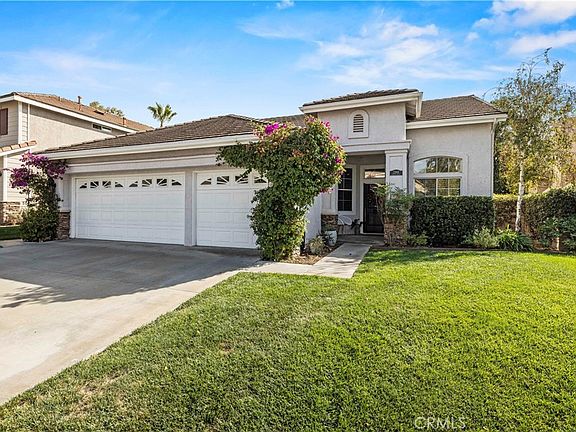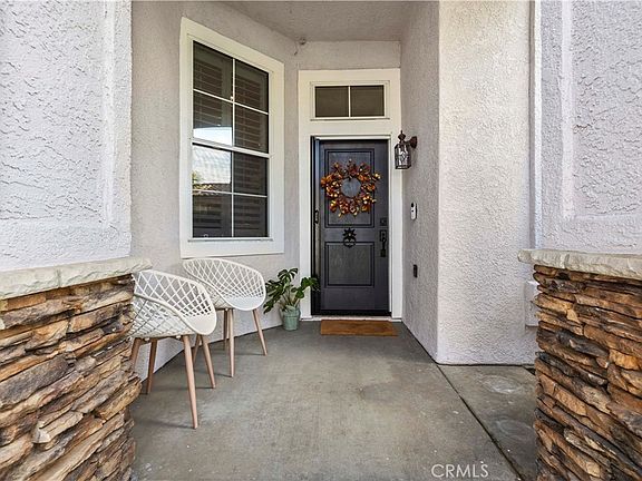 Gorgeous Single-Story Stunner and Move in Ready! This beautifully upgraded single-story home is packed with style and function! Featuring an open floor plan, soaring vaulted ceilings, plantation shutters, and stunning light wood-look tile floors, it’s as inviting as it is impressive. The chef’s kitchen is the heart of the home, complete with a stacked-stone vent hood, stainless steel appliances, pot filler, granite counters, subway tile backsplash, crisp white cabinetry, recessed lighting, and a huge center island with seating + wine storage. The family room flows seamlessly with vaulted ceilings and a cozy stacked-stone fireplace. The spacious primary suite offers backyard access and a spa-like bath featuring a freestanding soaking tub under a chandelier, dual marble vanity, and a custom walk-in shower with multiple showerheads. Secondary bedrooms are generously sized with mirrored wardrobes and upgraded finishes. Step outside to your entertainer’s paradise with a covered patio, stacked-stone BBQ, firepit terrace, and grassy yard. Perfect for gatherings year-round. Don't want to miss this one!