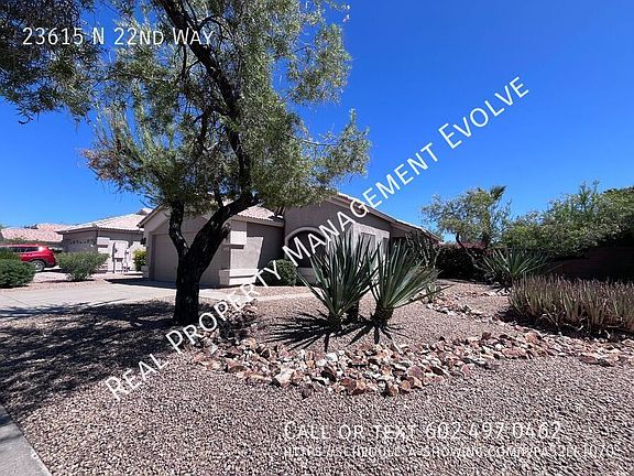 This well-appointed 3-bed / 2-bath Phoenix home has lots of upgrades! Spacious feel with tile throughout the main living spaces and carpeted bedrooms. Kitchen boasts upgraded cabinets and hardware and includes all major appliances. Primary suite offers ensuite bathroom with dual sinks, separate tub and shower, and walk-in closet. Washer and dryer included! Attached garage with polished flooring. Beautiful backyard with covered patio, grass lawn, and private swimming pool! Great location off of Cave Creek and Beardsley Road with easy access to the Loop-101 and SR-51 freeways. Take a tour before it's gone!