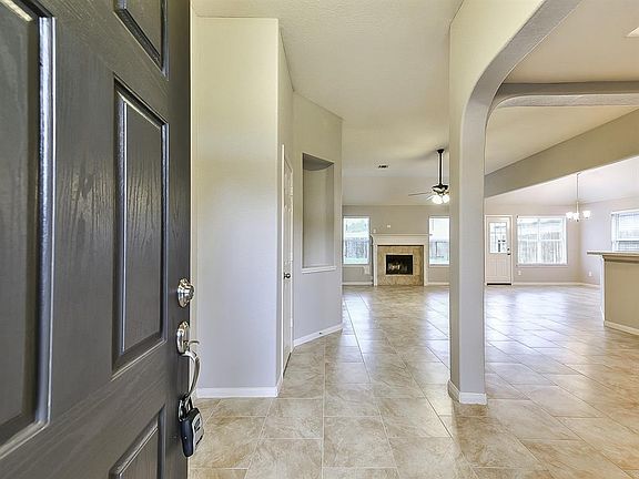 NEVER FLOODED!! Bee in LOVE with this large 1 story home on cul-de-sac lot in Villages of Spring Oaks. Grand covered front porch greets you at the entry. Open floor plan lives well with gorgeous tile floors through out. Formal dining could be FLEX space. Lovely fireplace showcases large den space. BRAND NEW KITCHEN with black cabinets, Quartz countertops, glass subway tile, new stainless steel appliances including gas cooktop, modern sink and vent hood. Master suite is SWEET!! Very large room with posh master bath has double sinks, garden tub and separate shower. Large master closet. Secondary bedrooms are large. HUGE Backyard!!