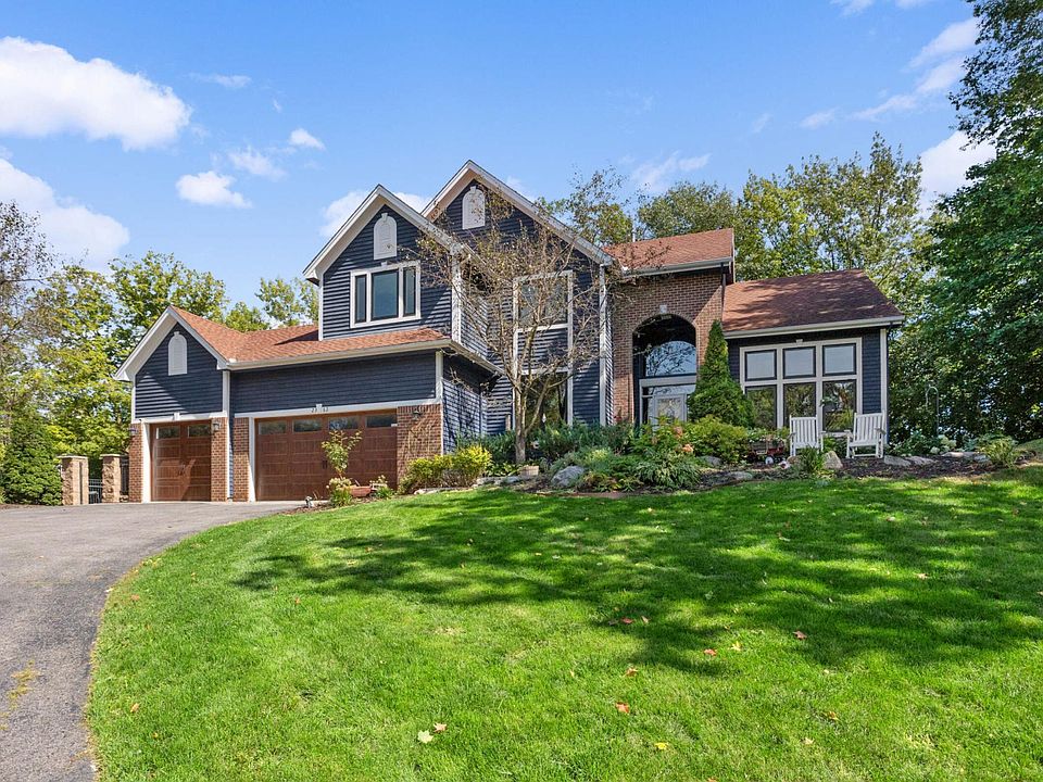 Every step as you enter the home is a wow! The open foyer welcomes you with vaulted ceilings, hardwood floors and updated lighting. Walk to the great room and enjoy natural light with the huge wall of windows, cozy up to the warm fireplace with custom mantle or kick back and watch TV. Open to the great room is the incredible cook's kitchen. This stunning remodel features a 12' center island with quartz countertops, six burner gas stove w/custom exhaust vent, built-in beverages fridge and microwave. Sip your morning coffee out of the Meile coffee bar, while sitting on the custom seating looking out to the pond. The gorgeous dining space has beautiful lighting, ship lap walls and custom shelving/lighting. Just around the corner is the sitting room with bar boasting two built-in refrigerators, TV, hidden storage and lighting. Need space to work? The spacious main level office features double glass doors and a large window. Don't miss the renovated mud room not just for laundry, but also great storage off the garage entry and a tiled doggie bath for your four-legged friends.