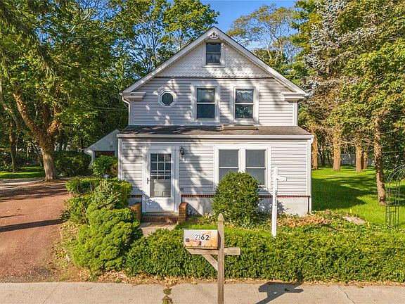 Steeped in local history, this charming 5-bedroom residence—once an Inn and family farm—dates back to 1850 and was originally part of a six-acre estate. Today, it proudly rests on a rare and expansive .84-acre flat lot, offering endless opportunities for outdoor enjoyment, entertaining, or potential expansion. Recent clearing and landscaping have beautifully revealed the property’s natural character and park-like setting. Perfect for car enthusiasts, contractors, or multigenerational living (with proper permits), the grounds include an oversized detached two-car garage plus a spacious shed, formerly a chicken coop, ready to be restored or creatively repurposed. Inside, the flexible floor plan blends historic charm with functional living. The main level features a bedroom and full bath, ideal for guests or a possible formal dining room conversion. An enclosed sun porch adds inviting warmth—flooded with natural light and offering versatile space for a cozy sitting area or additional storage. Upstairs, you’ll find four generous bedrooms, including one with a walk-in cedar closet and another well-suited as a library, home office, or den. A second full bath has been tastefully updated with a whirlpool tub and separate shower. The secondary staircase adds both charm and convenience, providing easy access to the kitchen. Period details are thoughtfully preserved throughout, including original interior doors and hardware, intricate moldings, built-ins, and hardwood flooring, featuring wide-plank floors upstairs. Modern updates include gas heating and cooking, Andersen windows, vinyl siding, newer roof, 200-amp electric service, and in-ground sprinklers. Ideally located near I-495, shopping, train station, and MacArthur Airport, this property presents a rare opportunity to own a piece of Long Island’s history. Potential commercial use or subdivision (buyers to verify with the Town of Islip).