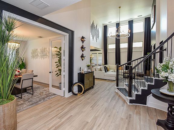 Hardwood and laminate flooringCovered patioDramatic grand staircaseExpansive dual walk-in closetsFreestanding soaking tubTall ceilingsElevated deck