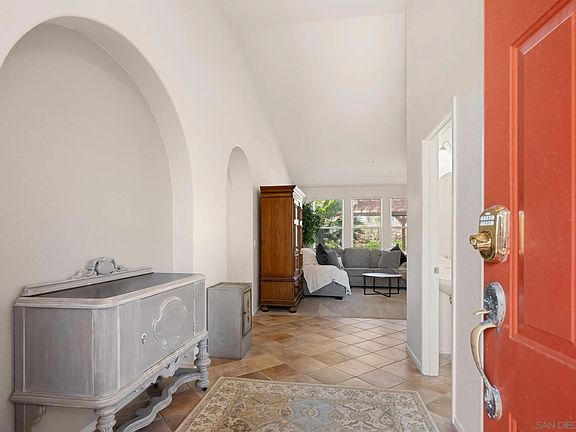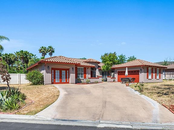 Welcome to your future dream home nestled in the beautiful mountains of Ramona! Gorgeous scenic drive, country living but not far from the City. This lovely home is situated on a neat cul-de-sac, on a half acre property with 4 bedrooms, 3 baths and one optional room for your office, game room or 5th bedroom. Spacious primary bedroom, cozy ensuite bath and walk-in closet. Fresh paint, beautiful kitchen, plenty of storage cabinets, solar tube bring natural lights, a computer desk in the kitchen area is a nice added feature, newly installed covered back patio, newer water softener, heat pump, on well water and Solar is paid for. The large backyard is very spacious, fenced for privacy with pool and spa for great entertainment.