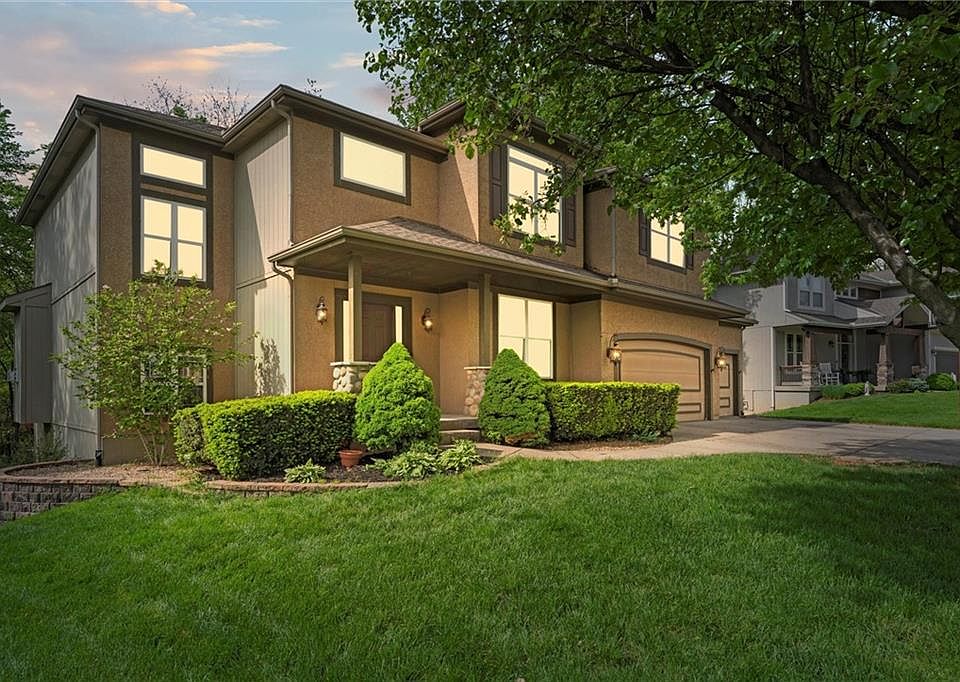 Dynamite home has so many exciting features you have been hoping to find! Unique floorplan with TWO bonus spaces off the main floor- ideal for working at home, playroom, den, etc. Four generous bedrooms each with bath access, all with hardwood floors and upstairs laundry rm. Absolutely gorgeous lot! Rare 1/3 acre lush, flat fenced yard backs to woods, a creek and greenspace for privacy. Slow down and listen for the frogs and the leaves on breezy evenings. Huge composite deck and stamped concrete patio with pergola plus a big firepit for smores with 8-10 friends. Refinished hardwoods, spacious kitchen with walk in pantry, drop zone, hearth room and center island is open to the great room with new tiled fireplace and custom mantle. More surprises! Fully finished walkout lower level with new bar and cabinetry, LVP flooring family room and adorable playroom with dutch doors. Tiled SPA ROOM! Hot tub for 6, chiller tub, sauna and steam shower, hello self care from home! Mill Valley schools and a wonderful neighborhood with pool. Location is great with 3 min highway access, local restaurants like Silo and McClains Bakery nearby plus extensive trails and lake views for hiking and biking through the Mill Creek Streamway Park and Shawnee Mission Park.