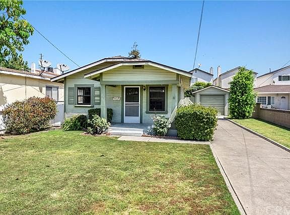 Welcome to this California Craftsman 1929 bungalow, located on a pleasant, Jacaranda tree-lined street. The same family has owned this property for many years. The home features a charming front porch, lath and plaster interior, and coved ceilings. The backyard has a spacious deck, a large shade tree, and beautiful landscaping. The deep garage has space for an office or workroom. Enter the home into a living room separated by an archway to the dining room. The kitchen has washer and dryer hook-ups but no appliances. The roof is approximately six years old. The interior of the home requires extensive repairs throughout. This property is sold "as is" without repairs or credits. This fabulous location is close to schools, shops, and restaurants.