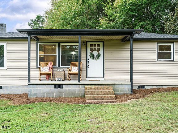 Simply charming home perfectly situated on one acre country-side. Enjoy peaceful country living with a home featuring many updates. Renovations include: new roof, new windows, low-maintenance luxury vinyl floors, new kitchen counters, plumbing, electrical, lighting throughout, water heater, updated bathrooms and new crawlspace vapor barrier. Just move right in and start enjoying. Primary bedroom features, wood-burning fireplace, walk-in closet, updated bathroom with step-in shower. Two secondary bedrooms are light and bright and share large updated hall bath. Open kitchen has new range, dishwasher and custom range hood. Rocking chair front porch is perfect for watching the evening sunset. Zoned RA, chickens, goats etc are allowed. Surrounded by rolling hills, this home is minutes from downtown Goldston and easy access to Hwy 421 for quick commute to Sanford, Siler City, Pittsboro and more. Welcome Home!