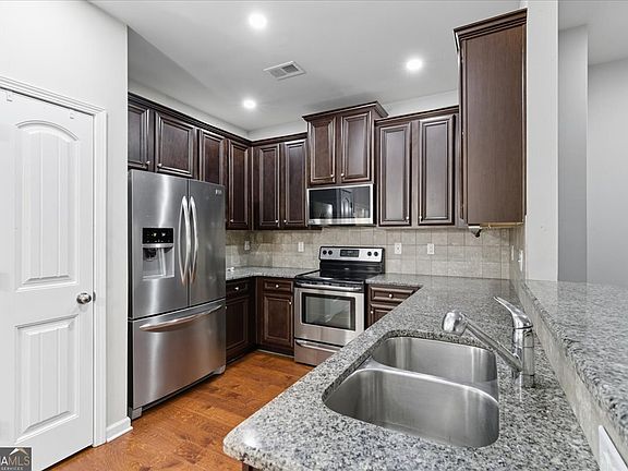 LOCATION is everything, and this move-in-ready townhome delivers! Enjoy an unbeatable location just minutes from downtown Atlanta, major attractions, and the airport, making commuting and exploring the city effortless. Step inside to discover gleaming hardwood floors, a premium feature that truly sets this home apart from the competition. The main level boasts an open floor plan perfect for entertaining, with a kitchen showcasing 42" cabinets and granite countertops overlooking the family room. Retreat to the primary suite, where you can step out onto your private balcony for morning coffee or an evening unwind, and enjoy the convenience of double closets. A highly sought-after advantage in this community is the oversized, extended driveway that easily accommodates four cars, solving any parking concerns for you and your guests. Fresh carpet and all major appliances are included for extra value and ease. This property is the perfect blend of comfort, high-end features, functionality, and an absolutely phenomenal Atlanta location-your new chapter starts here! Schedule your private tour today. Some pictures have been virtually staged.