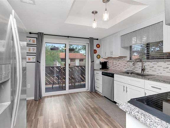 Discover this beautifully updated 3-bedroom, 2-bathroom condo located in the highly sought-after Yorktown at Beacon Place community in Safety Harbor. This spacious second-floor unit features an open floor plan with abundant natural light, a large living and dining area, and a fully renovated kitchen with shaker cabinets, granite countertops, and stainless steel appliances. The split-bedroom layout offers privacy, with a generous primary suite that includes a walk-in closet and updated en-suite bath. The two additional bedrooms are ideal for guests, a home office, or hobbies, and the second full bathroom has also been tastefully renovated. Enjoy two private patios with new hurricane rated sliding glass doors—one in front with an exterior storage closet and one in the rear, perfect for relaxing or entertaining. The in-unit laundry room adds convenience, and a covered carport with additional private storage is included. The building is directly across from the community pool and clubhouse. The monthly condo fee includes cable, internet, water, sewer, trash, exterior maintenance, and more. Located just minutes from downtown Safety Harbor, shopping, dining, parks, and the waterfront.