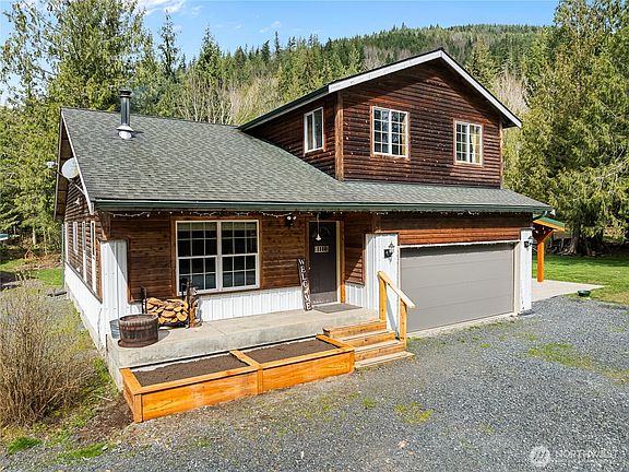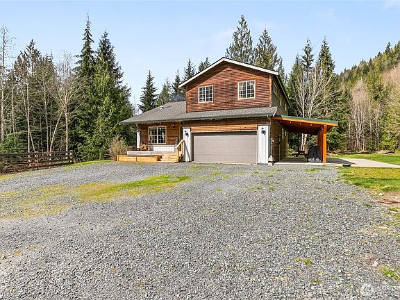 Nestled in complete privacy on 17 tranquil acres, this stunning farmhouse home offers the perfect blend of comfort and country living. 4 spacious bedrooms, 2.5 bathrooms, and 1,836 square feet of living space with primary suite on the main floor. Farmhouse finishes, wood burning stove and newer stainless appliances in the kitchen. Open layout allows for flow between the living, dining, and kitchen areas. Enjoy the serenity of nature from your new cedar deck and porch, or explore the property's walking trails that wind through the beautiful landscape. Currently set up with pens for goats or chickens, making it ideal for hobby farmers or those seeking a self-sufficient lifestyle. Gated entry, 2-car garage, and an oversized attached carport.
