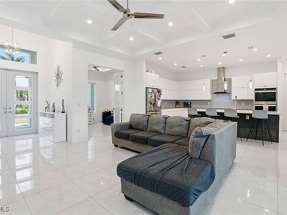 Motivated Sellers!! Listed BELOW appraised value. Nestled on a peaceful dead-end street with no thru traffic, this stunning custom-built Gulf-access home offers both luxury and tranquility. Surrounded by neighboring Gulf-access properties, this residence ensures lasting home value in an exclusive waterfront setting. Designed for convenience and peace of mind, the home boasts a durable metal roof with a 50-year warranty, a whole-home reverse osmosis system, a 17.5KW generator with hookup and 3-gauge cord, a solar system, and CAT 5 hurricane-rated windows and sliders throughout. A comprehensive security system with eleven cameras provides added protection, while extra outlets in every room enhance functionality. A spacious second en suite bedroom and bathroom offer additional comfort for guests or family. Upon entering, you’re welcomed by ceilings up to 12 feet and an abundance of natural light streaming through corner pocket sliders, seamlessly blending indoor and outdoor living. Elegant 24x24-inch porcelain tile and quartz countertops extend throughout the home, creating a sleek and modern aesthetic. The main living area features a custom tray ceiling and a dedicated office space. The chef’s kitchen is a true showpiece, equipped with two full-sized ovens, an induction cooktop, an oversized island, a walk-in pantry, and extensive cabinetry. Each bedroom is generously sized with walk-in closets. The primary suite is a retreat of its own, showcasing tray ceilings and dual pocket sliders that invite the sunrise into your space. Motorized shades are seamlessly integrated for effortless convenience and enhanced comfort. The luxurious en suite bathroom features a walk-through shower with dual showerheads and a rainfall head, a soaking tub, and dual vanities. The walk-in closet is thoughtfully designed with additional outlets for convenience. Step outside to your private backyard oasis, complete with a custom heated saltwater pool, outdoor shower, and a fully equipped outdoor kitchen. Motorized noseeum screens offer comfort and protection, while a concrete pad by the water provides the perfect spot for relaxation. A floating dock ensures easy kayak access, making waterfront living effortless. All pool equipment conveys with the home. The oversized two and a half car garage comes with added shelving, offering plenty of storage. This home is just minutes from Coral Oaks Golf Course, Crystal Lake and the highly anticipated Seven Islands Project, a transformative development set to bring immense value to the area. This exciting project will feature a lagoon resort, waterfront restaurants, a public marina, and a luxurious Marriott resort, enhancing both lifestyle and investment potential. This exceptional property blends elegance, efficiency, and premium features—schedule a private tour today and experience Gulf-access living at its finest!
