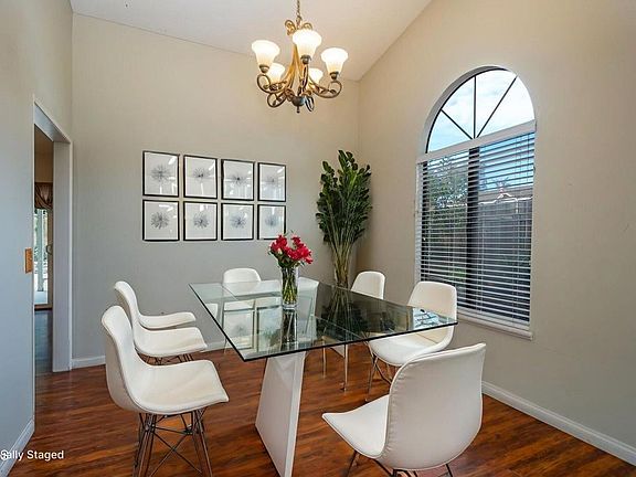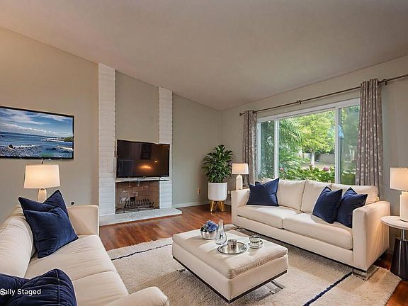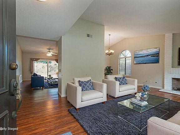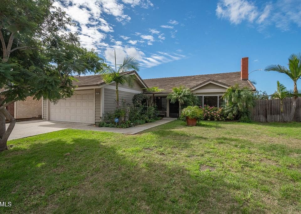 Wonderful, well-kept home located on a quiet street in the desirable Park Del Sol neighborhood of Ventura. This property offers 1,765 square feet of living space on a generous 6,534 square foot corner lot.The home features 4 bedrooms and 2 bathrooms, an attached 2-car garage, and ample driveway parking. Inside, you'll find a sizable master bedroom with a vaulted ceiling and an en-suite master bath. The formal dining area, family room, and living room also boast vaulted ceilings and a charming brick fireplace. There is also a separate laundry area for convenience. Recent upgrades include a NEW ROOF and newer wood-like flooring throughout. The peaceful and tranquil backyard is perfect for entertaining, featuring a convenient covered patio, a stone patio ideal for BBQs, plenty of fruit trees, and awesome landscaping. This home is ideally located with a park just across the street and close proximity to freeways, fine dining, shopping centers, and more.This unique home with its wonderful amenities is waiting for your personal touches.