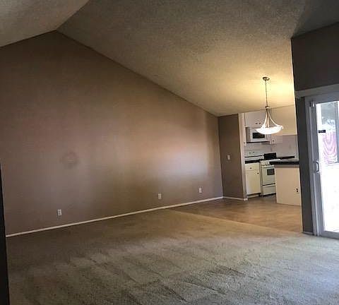Adorable unit, one story, looks like a house, private yard and one car garage, room for additional cars in driveway. Newly painted, newer windows, granite counter tops. Large master with dressing area. Patio sliding door leads to yard. Vaulted ceiling in Living room with fireplace. Owner pays the HOA, tenant to maintain the yard. Water is paid by the HOA. Must see.