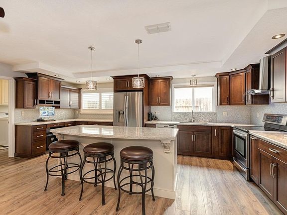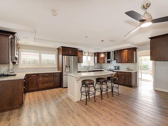 Beautifully remodeled and updated one story ranch home. Located in popular Coloma Palms subdivision. Newly remodeled kitchen is perfect for entertaining with huge center island, quartz countertops, glass tile backsplash and stainless steel appliances. Exstensive and gorgeous wood like laminate floors throughout most of home. The freshly painted living room features the warm glow of a pellet stove. Large master suite and two larger sencondary bedrooms. One of which could be converted back to 2 bedrooms which would make this a 4 bedroom home. Private backyard with concrete patio area and storage shed. Newer dual pane windows throughout,solar system makes this home extremly energy effiecent.