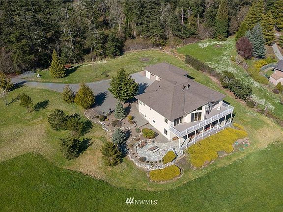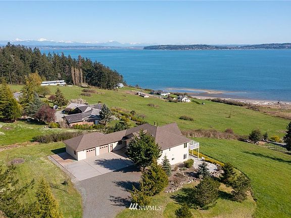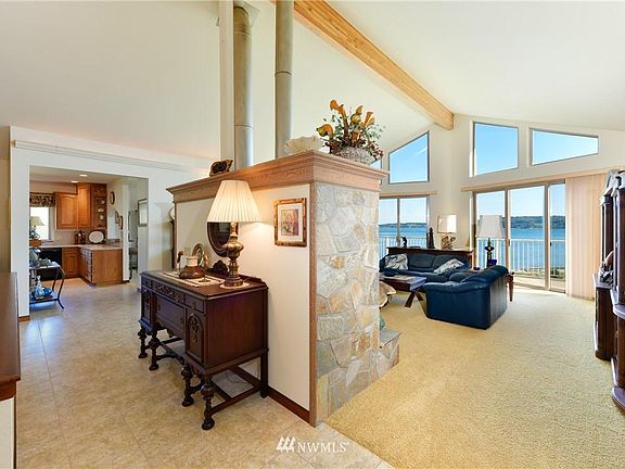 Amazing sweeping water, territorial and mountain views from this stunning home! Imagine watching the boats go by on a beautiful sunny day! The welcoming grand stone tiled gas fireplace with built in shelves greets you into the large vaulted great room. Double doors lead to upper balcony. Spacious kitchen has breakfast bar and gas stove. Master suite enjoys direct deck access as well as a luxury bathroom with jetted tub, separate shower and dual vanities. Downstairs could be a great mother in law suite and includes full kitchen, bar area & walk out to hot tub and gorgeous stone patio, perfect for lounging. Bring your RV or boat plenty of room on its own pad next to the large garage. Boat launch just 3 min drive to Mariners Cove County Park.