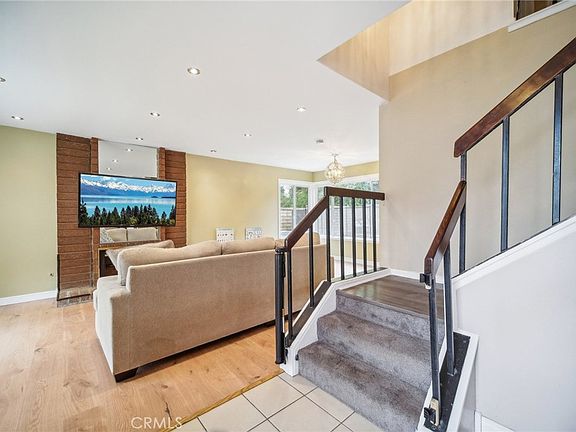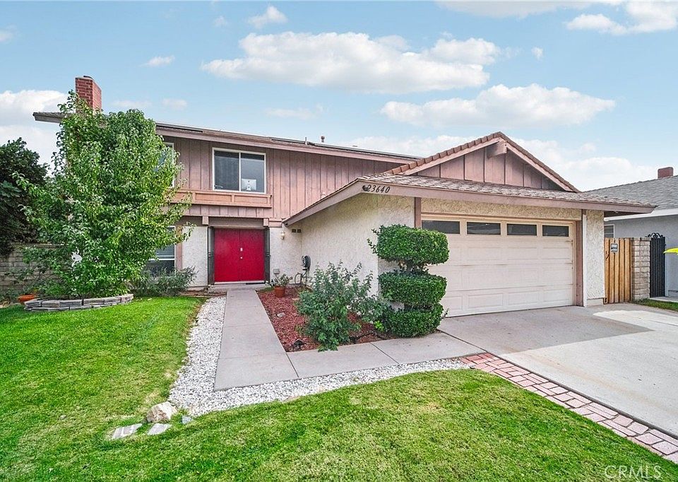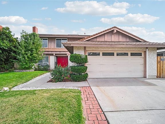 Welcome Home to this bright and inviting Two-Story, 5 bedroom, 2.5 bathroom single-family Pool home in the Heart of Valencia with NO Mello Roos & NO HOA! The home features 2,049 square feet of living space with 1 bedroom on the main floor and Four Bedrooms upstairs. Recent upgrades include newer plumbing, recessed lighting, NEW A/C and Heat, new carpets and flooring, newer kitchen, updated upstairs bathroom, closet system, new water heater, new refrigerator, dual pane windows and fully paid off Solar. This home is located in a prime cul-de-sac location with close access to the paseos providing walking routes to award-winning schools, parks, community areas, tennis, basketball courts, playgrounds, shopping, and dining. Entertainer's backyard with covered patio and tiled pool/spa. Double galley-style Kitchen with newer cabinets, a walk-in pantry with area for a coffee bar, quartz counters and a custom garden window. There is also a brick fireplace in the formal living room. The upstairs 4-Bedrooms are nicely sized with two of them having walk-in closets.