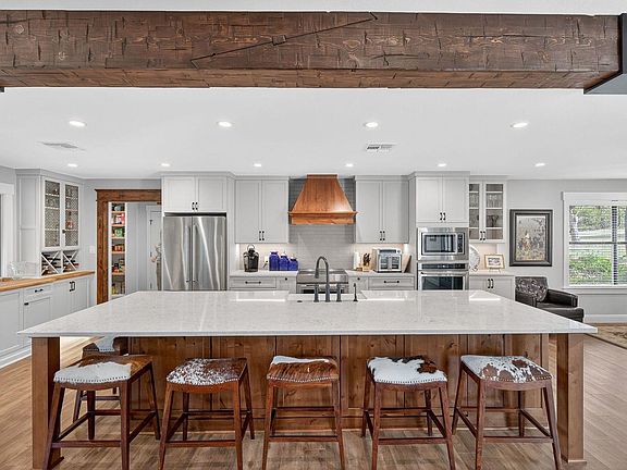 Prime unrestricted acreage with over 240 feet of frontage on Nameless Road, located directly across from the prestigious Travisso community in Leander—one of the fastest-growing cities in the Greater Austin Metro area. This property offers a rare blend of private, ranch-style living with easy access to city amenities and incredible future potential. The home and guest house were thoughtfully remodeled and upgraded in 2021, while selective removal of brush and cedar brought new life to an already beautiful landscape. The owners were meticulous in selecting native plants, reducing water needs while enhancing the picturesque setting. From the home down to the bluff-lined creek and around the approximately 3,000 square foot irrigated garden surrounded by towering pecan trees, this property truly embodies the Hill Country lifestyle.