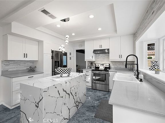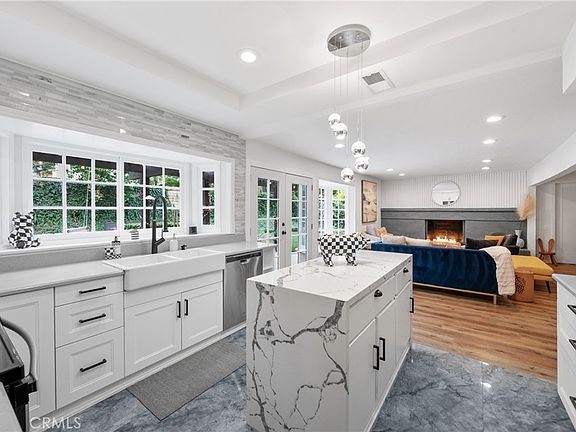 Welcome to this stunning fully remodeled 6-bedroom, 3-bathroom home perfectly situated within a cul-de-sac in the highly sought after Old Orchard I community, in desirable Valencia! Thoughtfully updated with no detail overlooked, this two-story gem seamlessly blends modern luxury with timeless charm. Step inside to find light-filled living spaces adorned with stylish finishes, creating a warm and inviting atmosphere. The open-concept kitchen boasts high-end appliances, sleek countertops, and custom cabinetry, making it a dream for both cooking and entertaining. The spacious living and dining areas flow effortlessly, providing the perfect setting for gatherings. This versatile floor plan includes two bedrooms downstairs—one with a closet and one without—offering flexibility for guests, a home office, or a playroom. Upstairs, you’ll find four additional spacious bedrooms, including the luxurious primary suite, which features a spa-like ensuite bath and ample closet space. Modern upgrades include solar panels, Nest thermostat and Ring security system, providing convenience and peace of mind. The home also features a spacious two-car garage, offering plenty of storage and parking. Outside, unwind in the private backyard oasis, complete with a relaxing hot tub—perfect for soaking under the stars. Enjoy fresh fruit from your very own apple and pomegranate trees. part of the Old Orchard I community, you’ll also have access to a beautiful community pool, recreational room, paseos and a community park currently being renovated, ensuring even more opportunities for outdoor enjoyment. Located in an award-winning school district and within a highly sought-after neighborhood, this home offers easy access to parks, paseos, shopping, dining, and top-rated schools. With no Mello-Roos and low HOA, this is a rare opportunity to own a stunning home in one of Valencia’s most beloved communities. Don’t miss your chance to make this exquisite home yours!