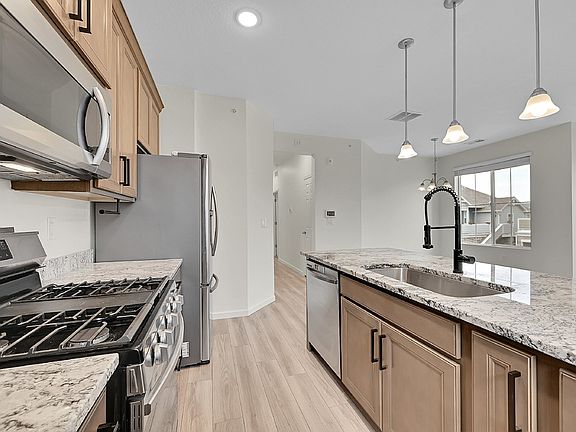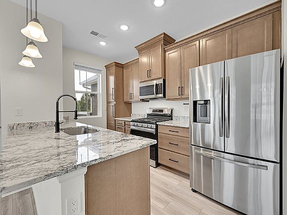 Gas fireplaceModern fixturesLarge islandAttached garageStainless steel appliancesOpen-concept kitchenDedicated dining area