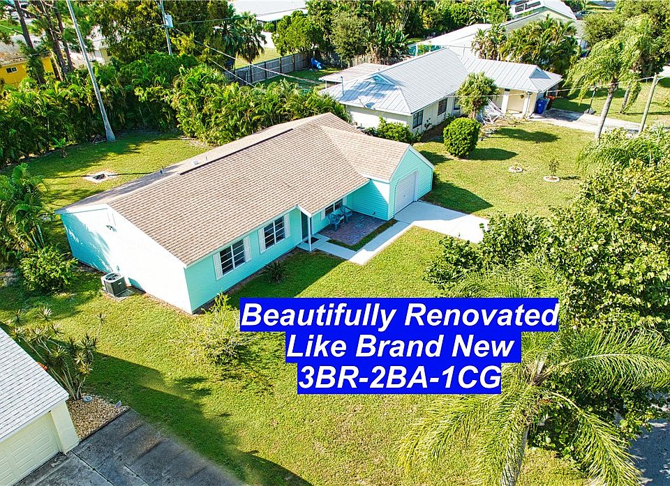 BEAUTIFULLY RENOVATED LIKE NEW 3BR-2BA-1CG OPEN FLOOR PLAN in Vero Beach Highlands Low HOA $34 per month. Home has not been lived in since Renovation. Renovations NEW: AC System, Vinyl-Laminate Flooring throughout, Pex Plumbing, Kitchen Stainless Steel Appliances, Granite Counters, Custom Cabinets, Sinks, LED Lights, Interior Doors, Bathroom Tub, Showers, Toilets. Hurricane Garage Door, Exterior Doors, complete Shutters, Outdoor lights. Roof 2017. Community amenities: Pickleball-Tennis-Basketball-Racquetball courts, Two Pools, Fitness Center, Walking Trails. Beautiful South Beach in minutes.