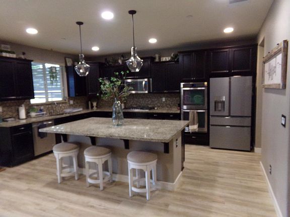 Super clean & elegantly designed 3,439 SqFt home. , 5 bedrooms and 4 full bath & 1 half bath with small office/study. Kitchen features granite counter tops with tile back splash, double oven for the holiday parties, larger center island, & large sized pantry with coffee station. Separate family & living room Down stairs. up stairs has an additional family/ game area. Outside is an oasis with full canopy cover in the back of the home. Pizza oven, barbeque, 2 top burner stove, cabinet space, sink(water and drain not hooked in). Custom concrete design, raised concrete with second cover with hot tub & seating area. Has second raised concrete area behind the pool with seating area. Possible boat/RV parking. Appx 10' wide with custom gate, paid off solar, but lease covers warranty for unit & must sign up to take over lease for solar contract. Solar for pool as well. Seller prefers a 60 day escrow.