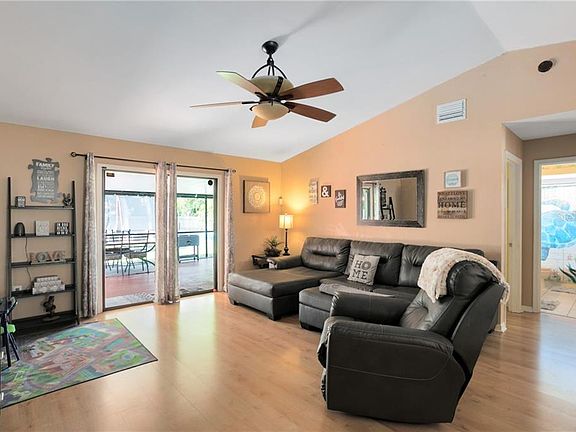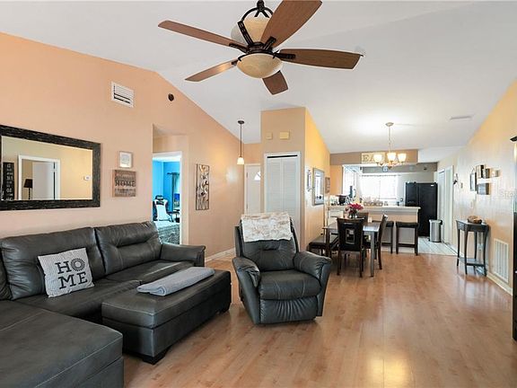 Spacious 3 bedroom and 2 bathroom home with 1,319 ht. sq. ft. Living/dining room combo and opens to kitchen. Kitchen offers breakfast bar, pantry and appliances. Master suite offer walk in closet, dual sinks and garden tub with separate shower. Interior features are vaulted ceilings, ceiling fans, split bedrooms and much more. Sliding door that leads to screen enclosed patio with fenced in yard. 2 car garage. Very large lot that sits in the back of the community.