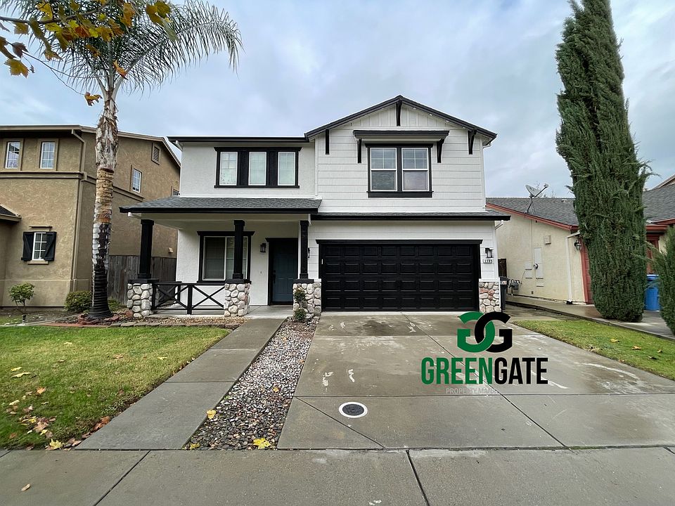 Welcome to this stunning 5-bedroom, 3-bathroom home located in the vibrant city of Turlock, CA. This 2-story house is equipped with a range of modern amenities including a dishwasher, gas stove, microwave, and a refrigerator. The kitchen boasts granite countertops and adding a touch of elegance to your cooking experience. The house also features a convenient upstairs laundry, a 2-car garage, and a guest suite downstairs for your visitors' comfort. The dark wood floors and upgraded fixtures throughout home add a touch of sophistication to the overall aesthetic of the house.