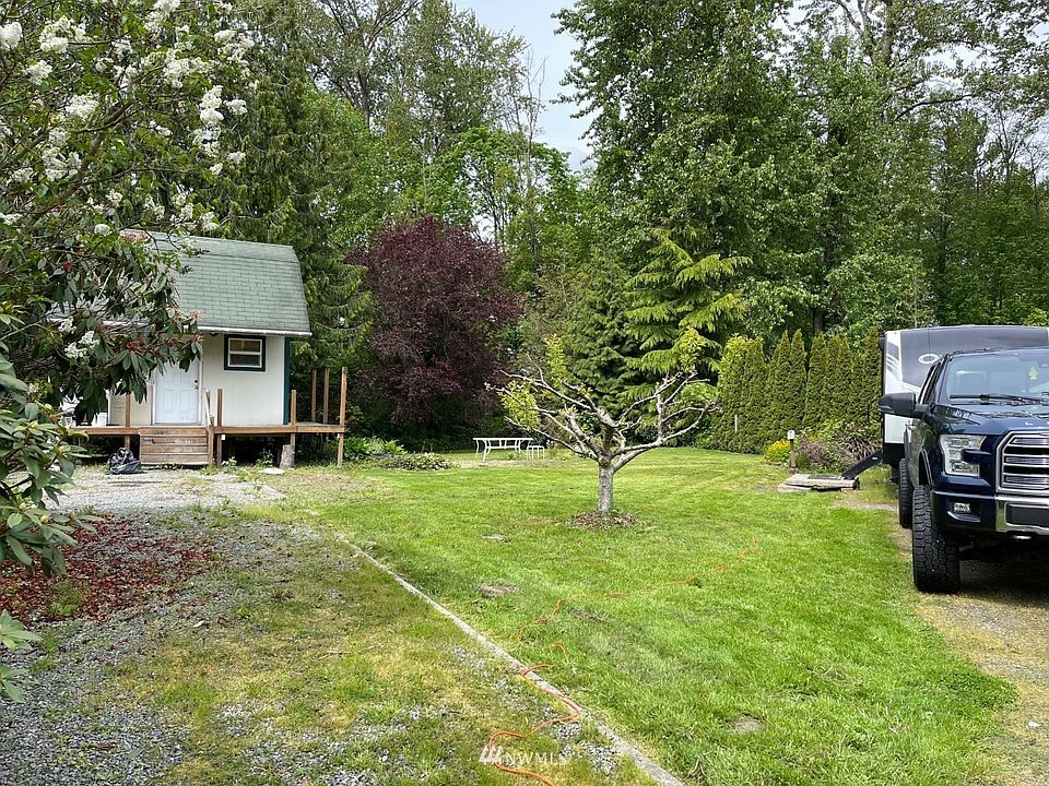 Beautiful quarter acre lot in Janicki Cove with raised shed and 32 ft travel trailer. Trailer is 2019 Keystone Outback with one large slide. Sellers had power septic buttons installed inside trailer for easier dumping during the rainy season! Complete septic/pwr/water set up for additional rv/trailer. Great landscaping with plumb tree, raspberries, and blueberries. Private community boat launch and park at end of street perfect for fishing on the Skagit River!
