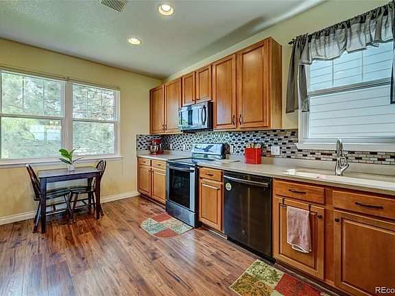 Welcome to this ideal home nestled in the master planned community, Murphy Creek. You'll love the open floorplan flooded with natural light, spacious entry, oversized eat-in kitchen, 9" ceilings and laminate floors throughout the first floor. If you love a good sound system, the family room comes with surround sound pre-wire. The mud room is well designed with coat closet, bench for groceries or sitting, built-in shoe storage and remodeled guest bathroom. Upstairs, you'll love the large primary suite with NEW CARPET, walk-in closet, and newly remodeled bathroom featuring oversized walk-in shower and double sinks. The bonus room is perfect for an office, play room, or additional living space. You won't haul laundry up and down the stairs with the upstairs laundry room fitted with cabinet storage. The secondary bathroom features double sinks and plenty of vanity space. The garage has a tandem space for easy storage of another vehicle or those fun summer toys. Note the insulated garage door and silent belt drive opener (2023). Outside, enjoy professionally landscaped front and back yards. The back boasts an expansive flagstone patio overlooking the golf course and gorgeous mountain views. The unfinished basement is waiting for your perfect design. It already has the rough-in plumbing for a future bathroom and has all egress windows for a conforming bedroom. Until then, you have additional space for storage or an in-house gym. This home also comes complete with brand new Impact Shingle roof (2023) (Ask your insurance agent about potential discounts), Energy Efficient Windows (2017) as well as Black Stainless Steel Energy Efficient Appliances (2018). Take advantage of the savings provided by the fully paid off solar panels. Enjoy all that Murphy Creek has to offer including the Championship Golf Course, Club, and Tavern as well as Clubhouse, Community pool, in community school just 5 minutes away, and so much more. This home has it all!