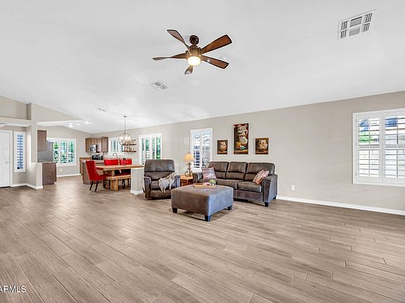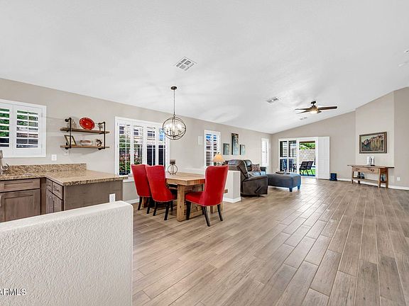 Welcome home! BEAUTIFUL 3-bed, 2-bath home filled with natural light and modern touches throughout. Open-concept floor plan seamlessly connects the living, dining, kitchen areas, creating a spacious and inviting atmosphere perfect for both relaxing and entertaining. Gorgeous wood-plank tile flooring flows through every room, complemented by neutral paint colors that suit any style. The updated kitchen and bathroom cabinets, sleek granite countertops, and stylish tiled showers add a touch of luxury. Step outside to a covered back patio overlooking an open backyard designed for outdoor fun. Just down the street, you'll find a community outdoor space! Move-in ready and thoughtfully updated, this home blends comfort, style, and functionality — all in one great package. She won't last!