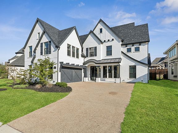 This curated residence located in the gated community, Hills of Kingswood, was designed intentionally to set a dramatic tone in every room. Starting with the high-impact kitchen which is anchored by a black quartz waterfall island with a brushed brass coiled-spring faucet. Kitchen backsplash impresses with a full-height bookmatched tile wall, creating a seamless and luxurious statement complete with floating kitchen shelves, decorative white vent hood and matte-black sconces. Main living space is defined by a dramatic floor-to-ceiling feature wall, complete with sleek electric fireplace and 2-story decorative lighting - emphasizing the room’s soaring scale. Additionally, a sliding glass door system blurs the line between indoors and out, offering incredible natural light and an effortless flow for entertaining. Formal dining, lounge and bar areas continue the curated aesthetic, boasting a striking brushed brass globe chandelier over the lounge space & a woven pendant dining chandelier which softens the adjacent dining nook with its organic texture. Primary suite is a statement unto itself, with marble-inspired tile flooring and coordinating accent wall. En suite bath impresses with freestanding tub, dual vanities with black marble counters, and dual-headed shower. Spacious primary closest completes the space with direct laundry access. Main floor also boasts a dedicated office, offering flexibility to serve as a guest suite, with access to a striking secondary full bath finished in bold patterned tile and designer wallpaper. Upstairs, along with 3 beds & 2 full baths, opens to an expansive retreat with three distinct living areas. Offering endless opportunities for customization; whether envisioned as media, game, library, workout, second office, or playroom, this versatile space adapts to every lifestyle. Incredible location with quick access to scenic walking trails, Lake Lewisville, Legacy West, The Star, and Frisco’s premier dining and shopping destinations.