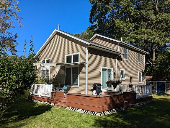 Check out this Beautiful home in a private setting. Enjoy time on your back deck in your private back yard, with a abundance of wildlife to enjoy. Kitchen opens up to the living room , great for entertaining. Wood burning stove in living room to take the chill off the cool nights . Main floor laundry right off the kitchen. Upstairs is the Master Bedroom &private bath. Just outside the master is a extra large loft, could be used for a craft area or nursery Downstairs is a full finished basement includes a large rec room and a third bedroom. Underground sprinkling & centural Vac system for easy cleaning .