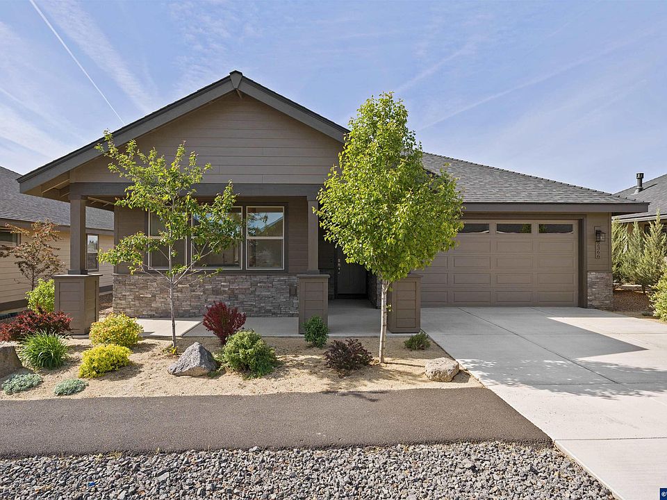 Beautifully designed and move-in ready! This warm, inviting home offers an open layout with a cozy gas fireplace and bright breakfast nook. Gourmet kitchen with quartz counters, stainless appliances, and ample storage. Spacious primary suite and covered patio for outdoor relaxation. Located in a 55+ gated community with a new clubhouse under construction featuring an indoor pool, pickleball, gym, bocce ball, and second floor observation deck. Close to trails, golf, dining, and shopping.