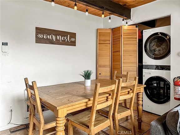 Charming mountain retreat in Arrowbear! This 2-bedroom, 1-bath cabin offers level entry and parking for up to 3 cars. Ideally located within walking distance to the park and lake, and just a short drive to snow skiing and year-round outdoor adventures. Inside, you'll find a cozy living room with soaring ceilings, expansive windows, and a wood-burning stove. The main-level bedroom adds convenience, while the upstairs loft is perfect for relaxing or enjoying a game of pool. The fully furnished home is turn-key and currently a successful short-term rental—STR permit is transferable to the new owner!