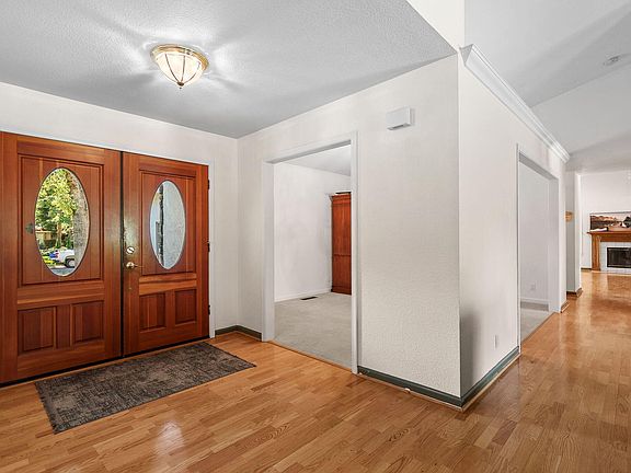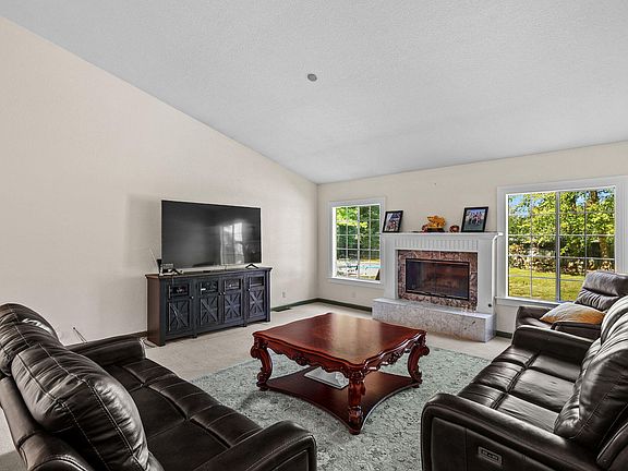 This 4-bedroom, 2.5-bathroom home offers nearly 3,000 sq ft of living space! Vaulted ceilings and large windows create a bright, airy interior. Enjoy cozy evenings by the gas fireplace in the living room, or relax in the family room off the kitchen, which features its own gas fireplace and warm wood-paneled ceilings. A dining area next to the kitchen and a separate formal dining area provide plenty of space for entertaining. The generously sized kitchen has crisp white appliances and white quartz countertops. Retreat to the serene primary suite, where the bathroom includes a luxurious soaking tub and a white tiled walk-in shower. A second full bathroom, accented in modern black, also features a soaking tub and tiled shower for a spa-like experience. Step outside to a backyard patio, perfect for barbecues and outdoor dining. Swim in the private pool or exercise your green thumb in the secret garden. Mature trees and lush landscaping surround the home, offering beauty and privacy year-round.