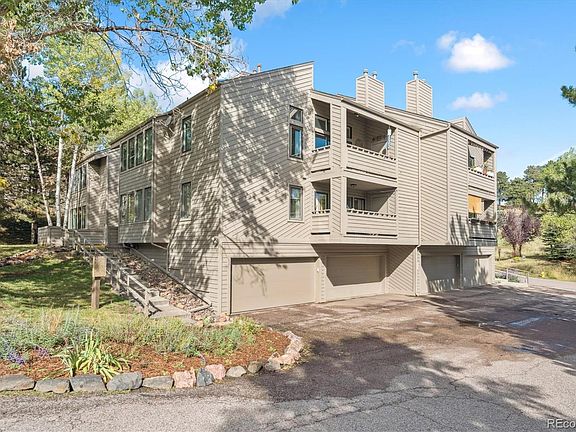 Nestled in the foothills this a peaceful place to call home. Step inside to discover stunning hickory hardwood floors that grace the main level, complemented by a beautiful kitchen boasting quartz countertops and top-of-the-line Bosch/GE appliances. Relax in the inviting living room featuring a cozy gas fireplace and soaring vaulted ceilings adorned with expansive windows, flooding the space with natural light. Retreat to the master bath oasis, featuring luxurious Villeroy & Boch sinks, Porcelanosa tiles, and high-end fixtures. Upstairs, a spacious loft awaits, complete with skylights, ample closet space. Can easily be transformed it into a 3rd bathroom for added convenience. Start your mornings with coffee on the balcony, overlooking the tranquil brook and the serene sight of deer passing by. Convenience is key with a one-car attached garage featuring a large storage unit, plus additional parking on premises. Community amenities, including a clubhouse with pool, workout room, racquetball, and tennis courts just steps away. Explore nearby biking trails and a beautiful pond, with easy access to I-70 for a swift commute to Denver. Experience modern living at its finest in this Beautiful Genesee residence.