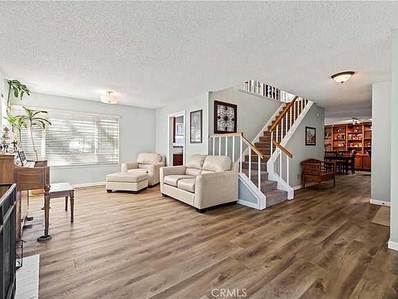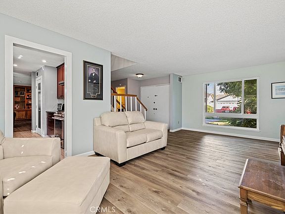 LOCATION, LOCATION, LOCATION! Don’t miss this Spacious Valencia home in the desirable Del Valle neighborhood! You’ll love the welcoming green lawn, mature shade tree, and brick-and-concrete driveway leading you into the home. Inside, a welcoming living room with formal dining area centers around a cozy fireplace ideal for entertaining, complemented by newer flooring throughout the main level. Custom built-in area opens to the large family room with a raised-hearth fireplace and surround sound speakers for enjoying time with family and friends. The remodeled and extended kitchen boasts high ceilings, upgraded cabinetry, granite countertops, a center island, walk-in pantry, and abundant storage, plus a sunny breakfast nook with backyard access! Upstairs, the generous primary suite offers a walk-in closet and ensuite bathroom, while three additional bedrooms provide ample space and share a full bath. The home also includes a convenient indoor laundry room. Notable upgrades include Milgard double-pane windows throughout most of the home, fresh exterior paint and newer roof installed in 2023, upgraded electrical panel, and copper plumbing. Enjoy the mature greenery in the backyard which adds privacy to the space, along with an open-beam patio cover and a layout perfect for gatherings. Ideally located near parks, schools, paseos, shopping, dining, and with easy freeway access, this home combines comfort, functionality, and an unbeatable location!