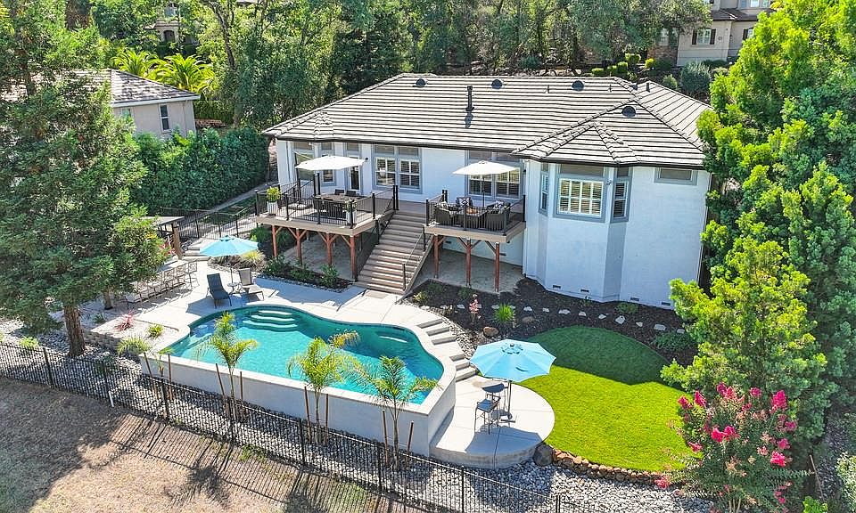 Welcome to luxury living in one of Rocklin's most sought-after gated communities! This fully remodeled 4-bedroom + den, 2.5-bath home is located right on the Whitney Oaks Golf Course and offers high-end finishes, thoughtful upgrades, and unbeatable golf course views and gorgeous sunsets. Step inside to find quartzite countertops, custom soft close cabinetry, new appliances, and stylish new flooring throughout. The open-concept layout includes a spacious living area with a custom fireplace and built-in sound system wired for Sonos inside and out, perfect for entertaining. The primary suite is a peaceful retreat with custom closet, while the additional bedrooms and den provide plenty of flexibility for work or guests. Outside, enjoy your own private oasis with a brand-new custom deck with accent lighting, sparkling salt system pool, and a charming gazebo with full electrical, all surrounded by professionally landscaped front and backyards with wired lighting. Additional features include a drive-through garage, newer top of the line HVAC, whole house fan, ceiling fans throughout, and top-rated Rocklin schools. This is golf course living at its finest in the heart of Whitney Oaks. Don't miss your chance to own a show-stopping home in one of the area's premier neighborhoods!