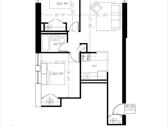 875 sq. ft two bedroom apt on the 5th floor of elevator bldg
